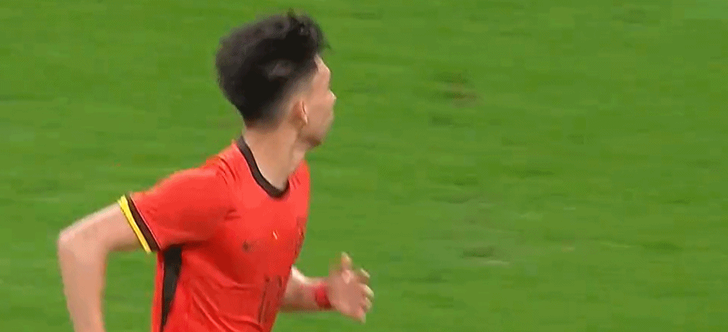 上半场补时阶段,王钰栋禁区内兜射远角破门,帮助国青2球领先。破门后,王钰栋做出了姆巴佩双手抱胸的庆祝动作。